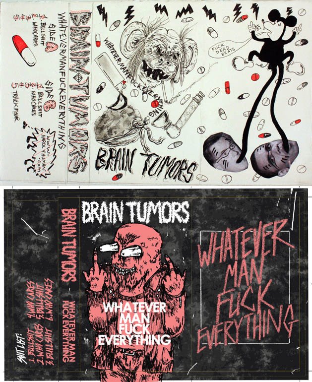 we also have two sets of tapes we just put out. the title is called “whatever man, fuck everything”. these are two different tapes with the same title because it is hard enough to come up with one title. here are some pictures: