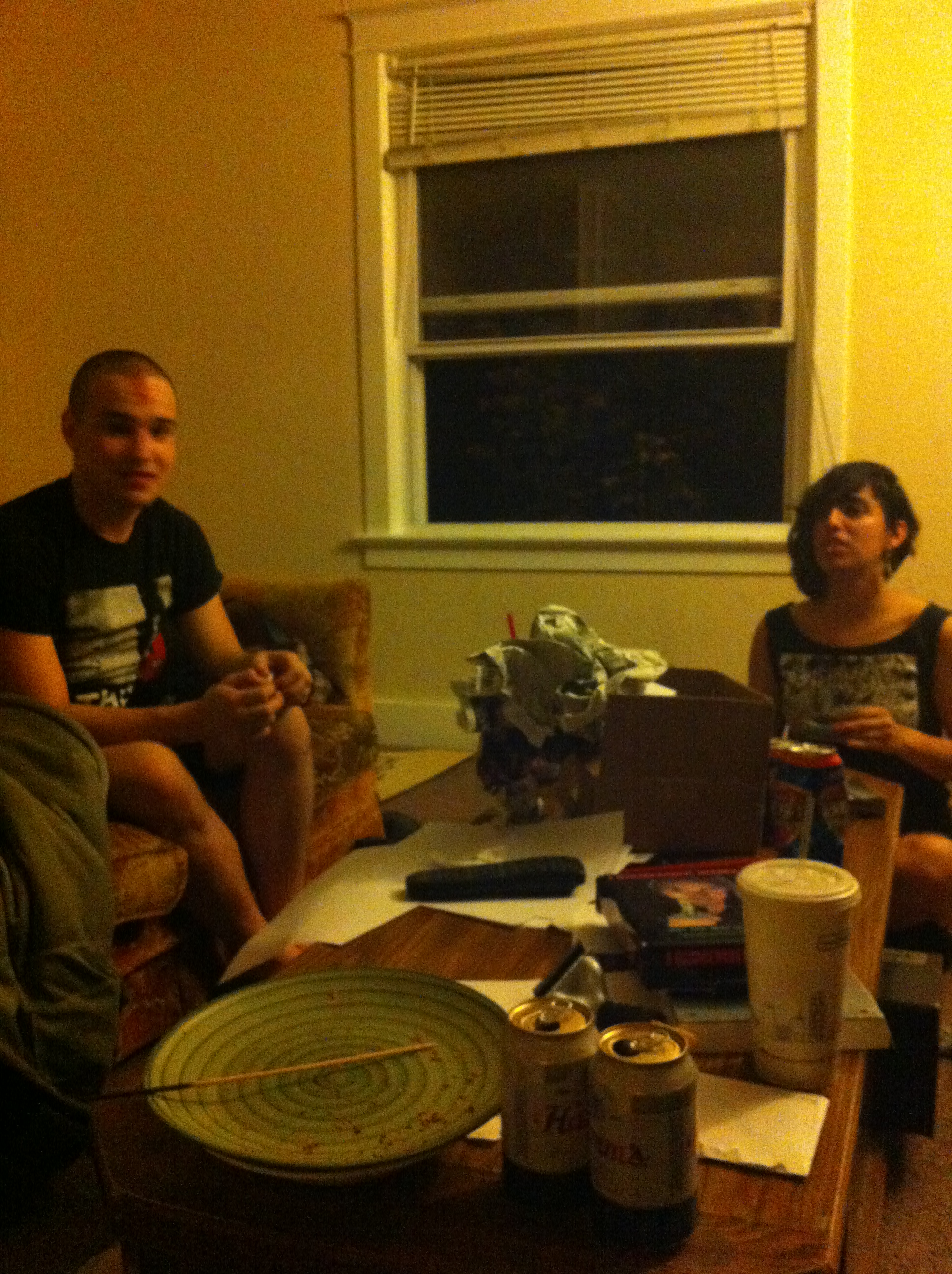 i also wrote “luke – glasses said hi”, which i don’t know what that means. it could’ve been this young dude i was talking to earlier, but i can’t remember. anyway, the set was fun. we scared people and sold some things. i wandered around outside with no pants, trying to cool down and stop sweating.