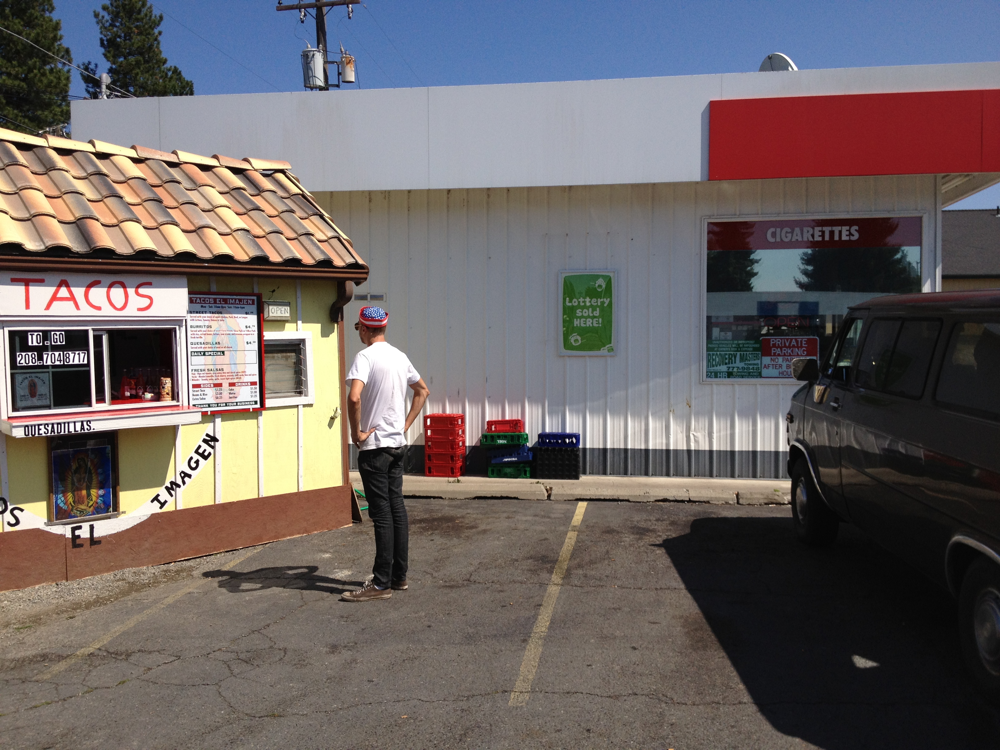 we drove and the van coughed. the brakes were grinding. we stopped at some mom & pop gas station convenience stores where everything was expired. we also stopped in Coeur D’Alene, ID to get tacos. Coeur D’Alene is beautiful and the tacos are cheap and good. the drive was not bad and we were looking forward to playing another show with The Funeral and the Twilight as their show in Spokane fell through when one of the bands on the bill discovered that some of them are Satanists.