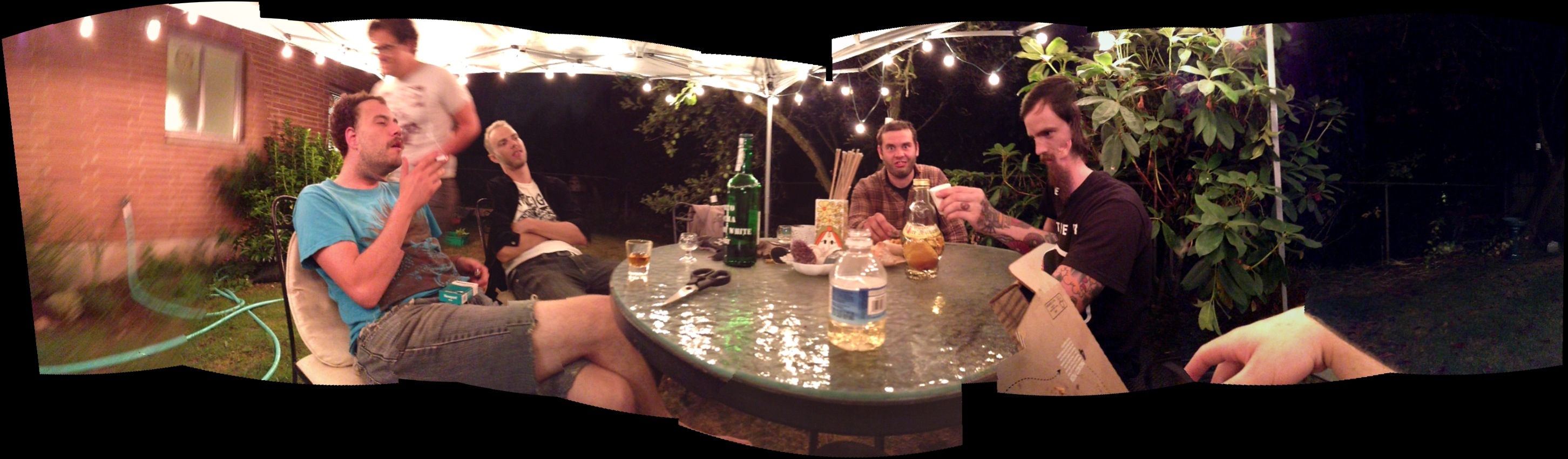 while sitting around West’s backyard, West kept trying to give everyone some pear brandy that his deceased grandmother had given him.