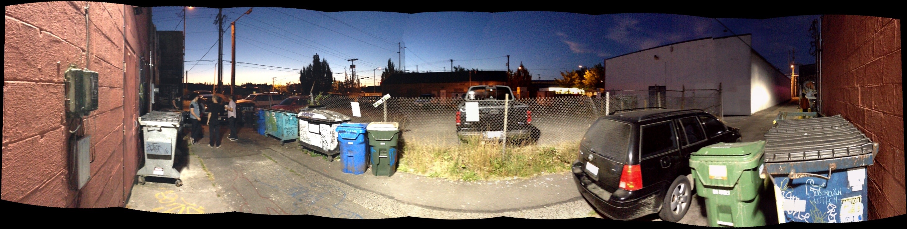 we stood around in the alleyway and talked, us, White Walls, Nudes, and Gag. White Walls had just returned from Calgary (and maybe BC). we were offered to play Calgary once by this dude who promised us some huge Canadian shows but we figured we should not chance it, given how we are criminals. White Walls are evidently not criminals, so they went to play the gig. another story i heard while drunk: i guess what happened is that White Walls played a huge show in Calgary but they didn’t get paid most of the money because the guy who booked the show owed this band from Texas, called Power Trip, a bunch of money.
