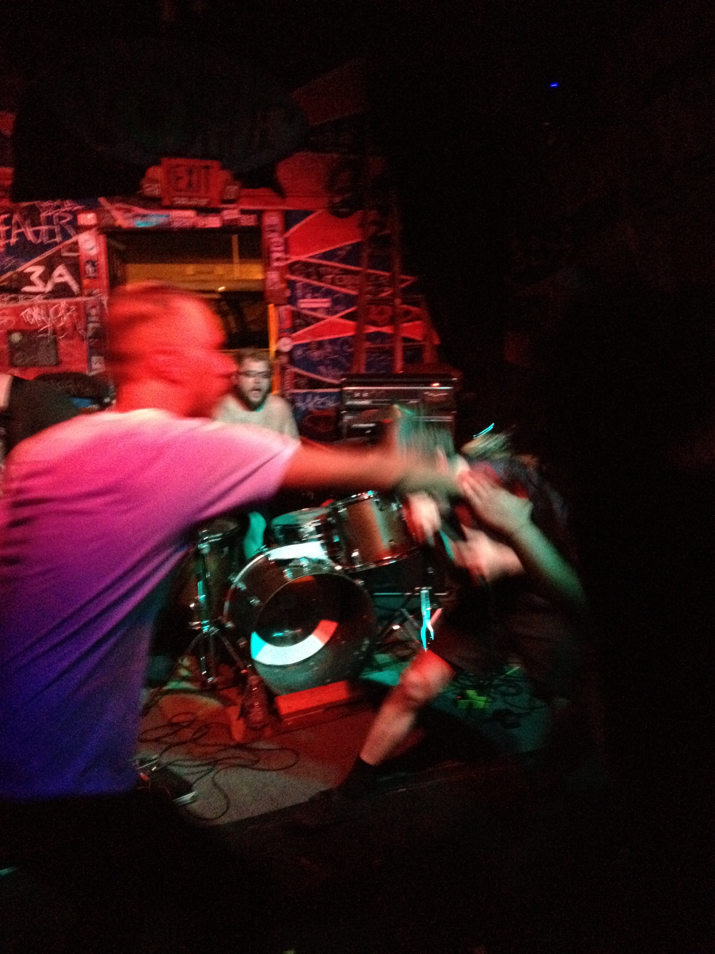as soon as our set ended, this nice person grabbed me, pulled me into the bathroom, and started cleaning my finger up and pulling glass out of my head.