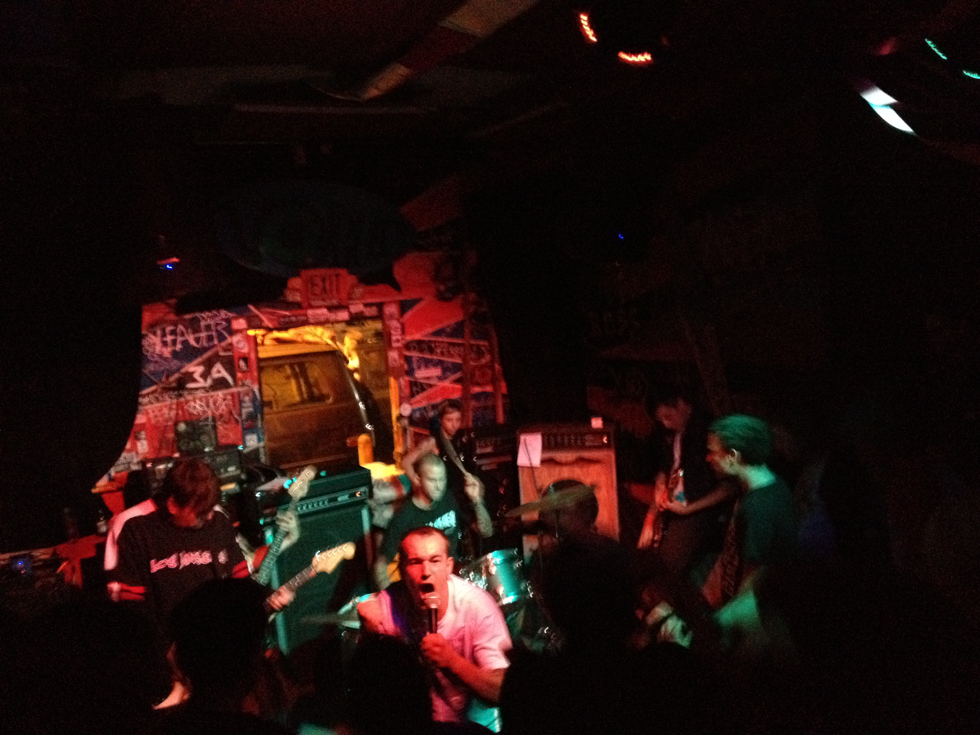 we started playing. i knocked a few beer bottles over. i was either drinking a beer or was just holding one, and i hit myself in the head with the bottle. sometimes i hit myself with the microphone. its part of the show, because i am angry and it makes people uncomfortable. after the first hit with the beer bottle i thought to myself,