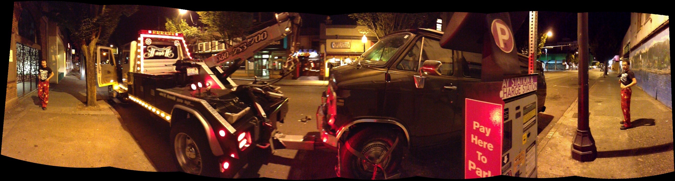 still fuming, i told them to fuck off and elected to stay with the van and wait for the tow-truck, then sleep in the van in the auto repair shop’s parking lot. Joel, realizing that i just lost my mind, decided to stay back with me.