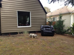 i slept on a tiny couch before searching the neighborhood for this gal’s lost dog, named Uncle Butch. she was staying in Sam’s backyard.